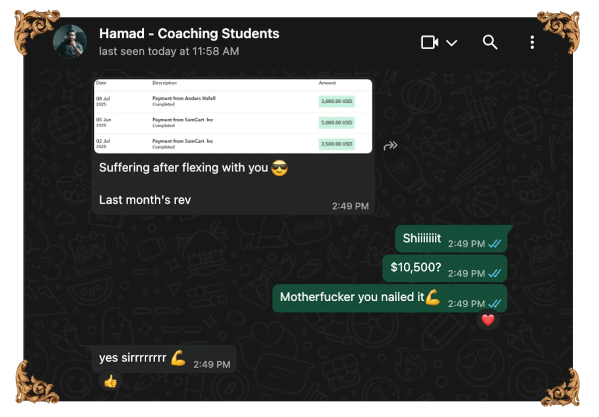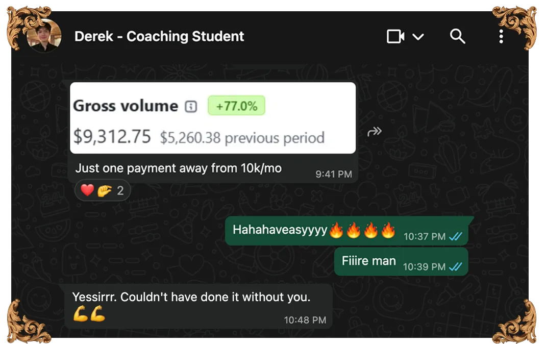"I went from having no idea how to land high-ticket clients to scaling past $5K/month in 20 days