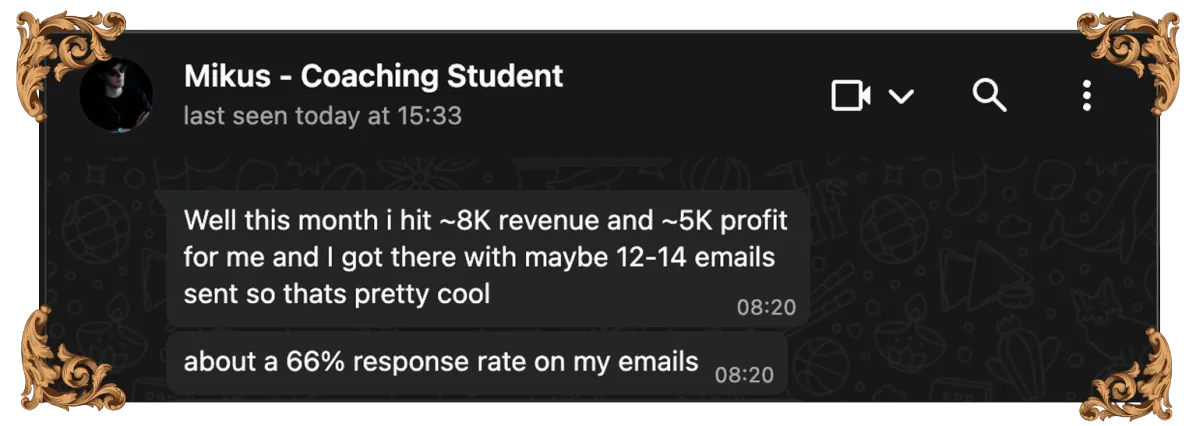 Then I started working with Hadad, applied the Freelancing Master Funnel, and scaled to $8,000/month with just 14 emails sent.